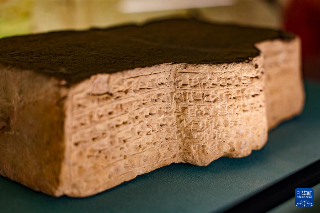 这是12月6日在“古波斯的荣耀——伊朗文物精华展”拍摄的楔形文字砖。 新华社记者 陈朔 摄