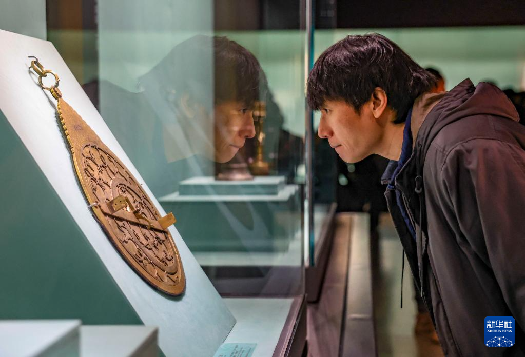 12月6日,参观者在“古波斯的荣耀——伊朗文物精华展”观看星盘。 新华社记者 陈朔 摄