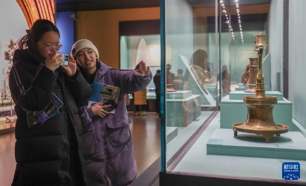 12月6日,参观者在“古波斯的荣耀——伊朗文物精华展”拍摄黄铜烛台。 新华社记者 陈朔 摄 |