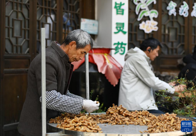12月8日,景宁县澄照乡封金山景区内,农民在筛选黄精。