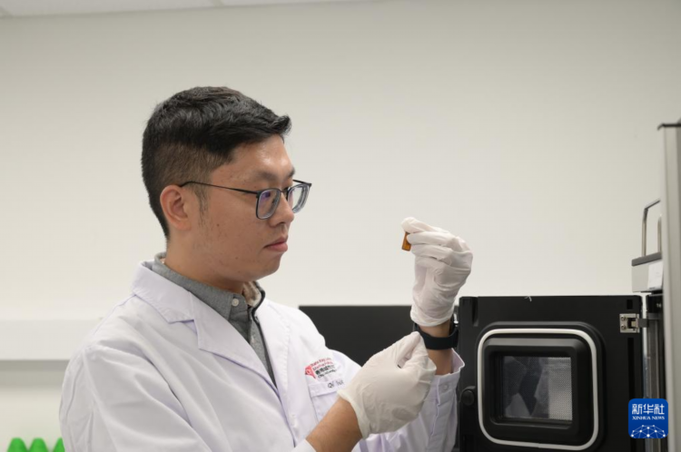 10月14日,香港城市大学博士后王琪在检验样品。