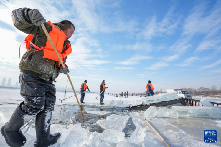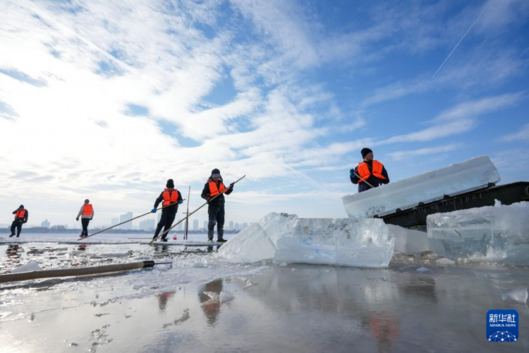 眼下,“冰城”哈尔滨采冰工作全面展开,采冰汉子从松花江上采出优质冰料,源源不断地运往冰雪大世界园区等地,用于景观建设。