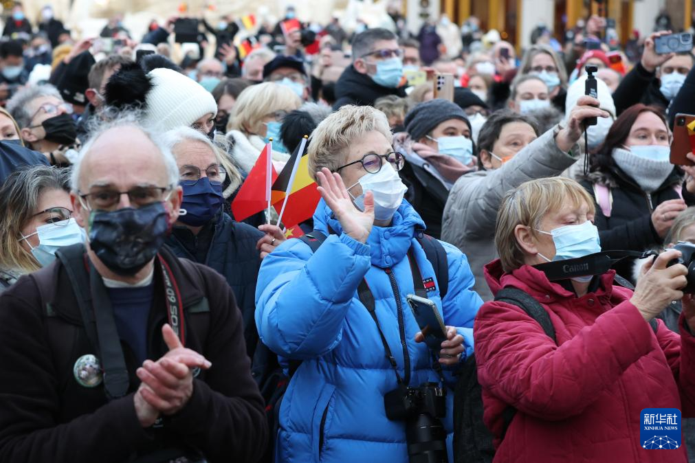 12月10日,在比利时布吕热莱特的天堂动物园,人们送别启程回国的大熊猫。新华社记者 孟鼎博 摄