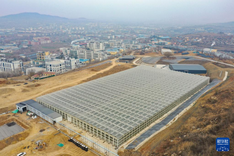 这是12月10日拍摄的大奎山花能互补示范项目智能温室(无人机照片)。