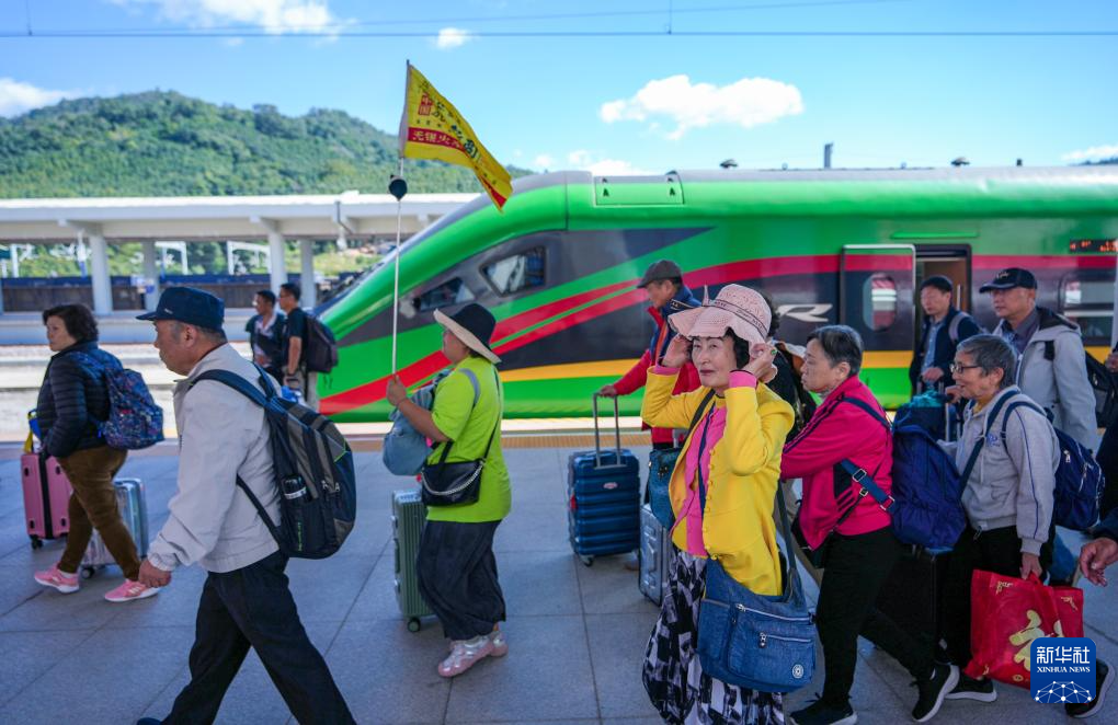 中老铁路开通运营三年 发送旅客超4300万人次 12月3日,旅客乘坐列车抵达中老铁路磨憨站。 新华社记者 陈欣波 摄