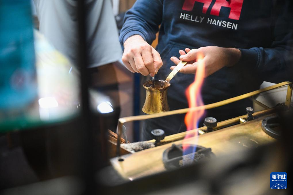 探访土耳其咖啡制作技艺 12月5日,在土耳其伊斯坦布尔一家咖啡馆内,一名工作人员制作土耳其咖啡。 土耳其咖啡历史悠久,2013年土耳其咖啡文化和传统被列入联合国教科文组织人类非物质文化遗产名录。与其他咖啡不同,土耳其咖啡是由特别细的咖啡粉末冲煮而成,一杯未经过滤的土耳其咖啡中会有一些沉淀物。在饮用土耳其咖啡时,当地人通常会搭配一杯水和一些甜品。 新华社记者 刘磊 摄