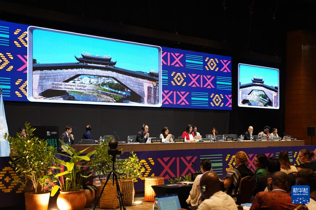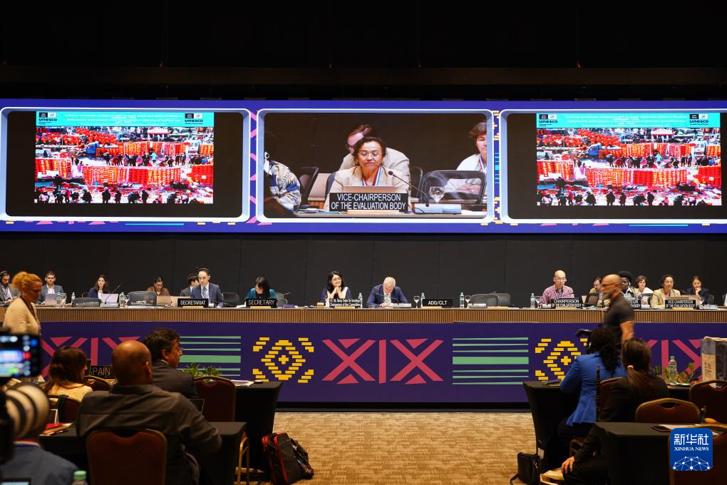 中国3个遗产项目转入人类非物质文化遗产代表作名录 12月5日,在巴拉圭亚松森联合国教科文组织保护非物质文化遗产政府间委员会第19届常会评审现场,大屏幕播放“中国木拱桥传统营造技艺”宣传视频。 正在巴拉圭亚松森举行的联合国教科文组织保护非物质文化遗产政府间委员会第19届常会5日通过评审,决定将“黎族传统纺染织绣技艺”“羌年”“中国木拱桥传统营造技艺”3个遗产项目从急需保护的非物质文化遗产名录转入人类非物质文化遗产代表作名录。 新华社记者 朱雨博 摄
