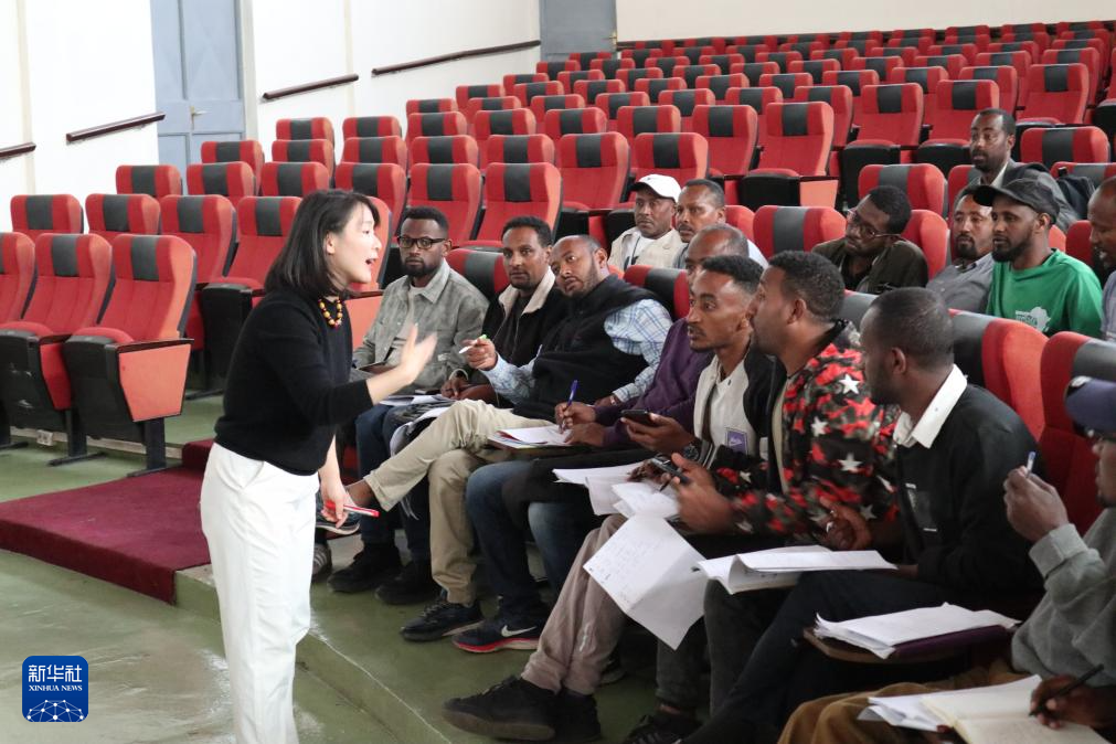 埃塞导游学中文 期待迎接更多中国游客 12月2日,在埃塞俄比亚亚的斯亚贝巴大学,孔子学院老师宋瑞荣(左)在教室授课。 新华社记者 刘方强 摄