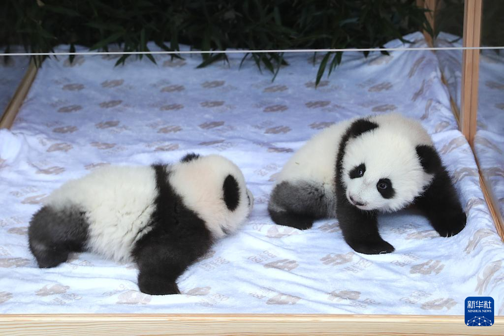 旅德大熊猫双胞胎幼崽定名“梦好”“梦甜” 这是12月6日在德国柏林动物园拍摄的大熊猫双胞胎“梦好”(左)和“梦甜”。 当日,德国柏林动物园为旅德大熊猫“梦梦”的双胞胎幼崽举行命名仪式,定名为“梦好”和“梦甜”。11岁的旅德大熊猫“梦梦”于今年8月22日诞下双胞胎。 新华社记者 杜哲宇 摄