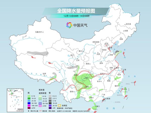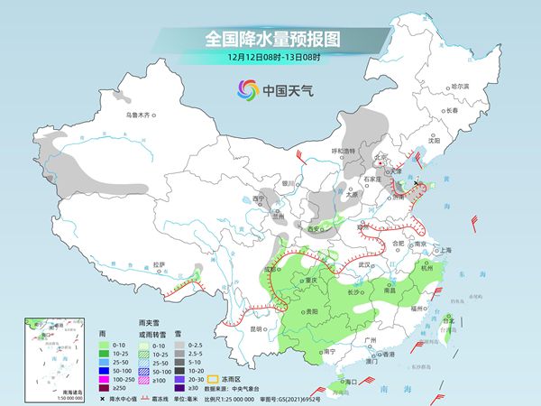昨天,我国雨雪范围依然较大,银川迎来今冬初雪。监测显示,昨日8时至今日6时,新疆沿天山地区、青海东部、甘肃中东部、宁夏、陕西北部、山西中南部等地部分地区出现小雪或雨夹雪,新疆巴音郭勒、宁夏等地出现中雪;广西北部、湖南北部、安徽南部、江苏南部、上海、浙江北部等地出现中雨,局地大雨。