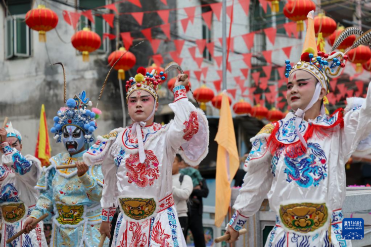 12月9日,广东省汕头市潮阳区贵屿镇玉窖村举办民俗活动,5岁女童庄恩琪手持英歌槌,跟随鼓点节奏与当地的英歌队员一同起舞,动作有力且充满韵律,赢得了在场观众阵阵掌声。