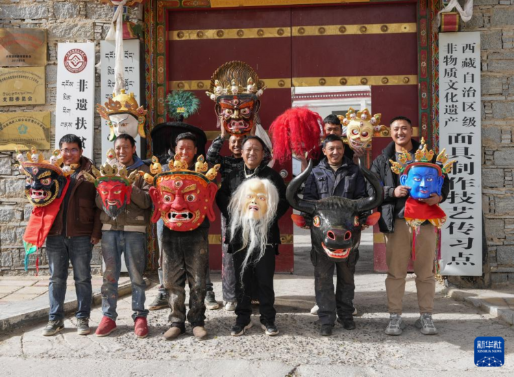 在拉萨市达孜区雪乡民间传统手工艺农民专业合作社的小院里,拉萨布制面具制作技艺西藏自治区级非遗传承人西洛和徒弟们忙得热火朝天,他们正在制作面具。面具制作工序繁杂,制作一个面具包括雕刻、分层、风干和喷漆等十几道工序。