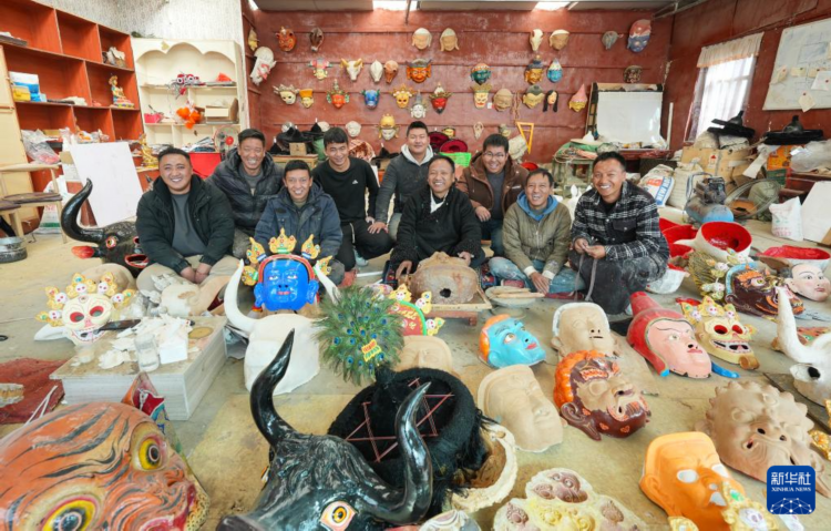 在拉萨市达孜区雪乡民间传统手工艺农民专业合作社的小院里,拉萨布制面具制作技艺西藏自治区级非遗传承人西洛和徒弟们忙得热火朝天,他们正在制作面具。面具制作工序繁杂,制作一个面具包括雕刻、分层、风干和喷漆等十几道工序。