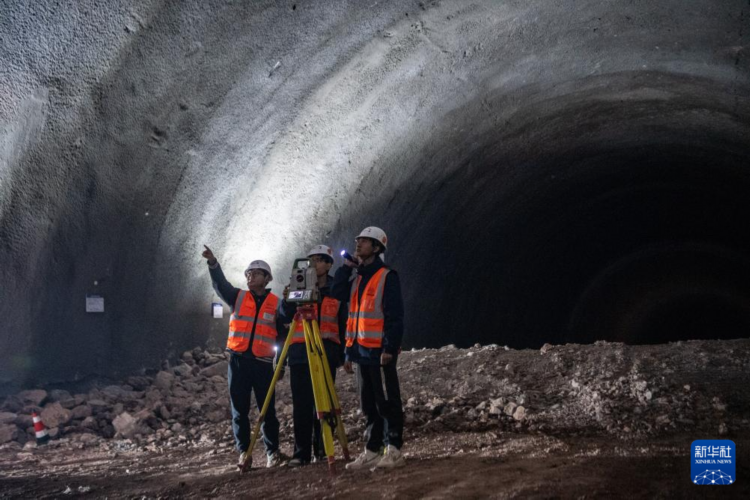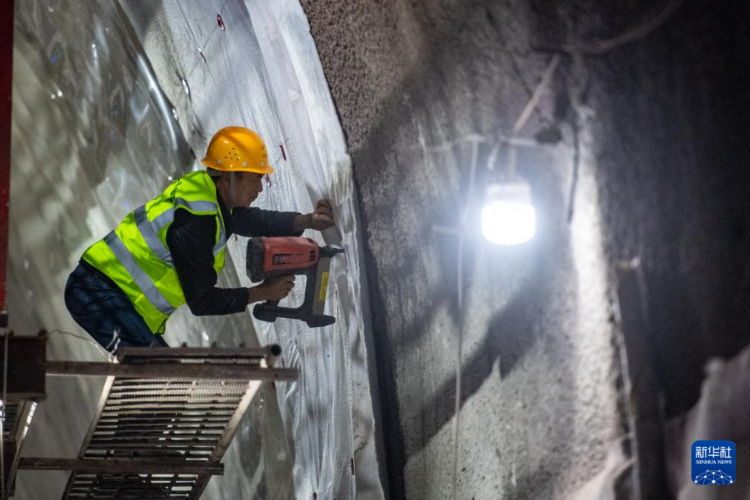 12月12日,工人在成达万高铁石坪村隧道建设施工现场作业。