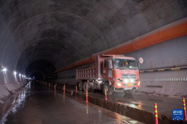 12月12日,施工车辆驶离成达万高铁石坪村隧道。