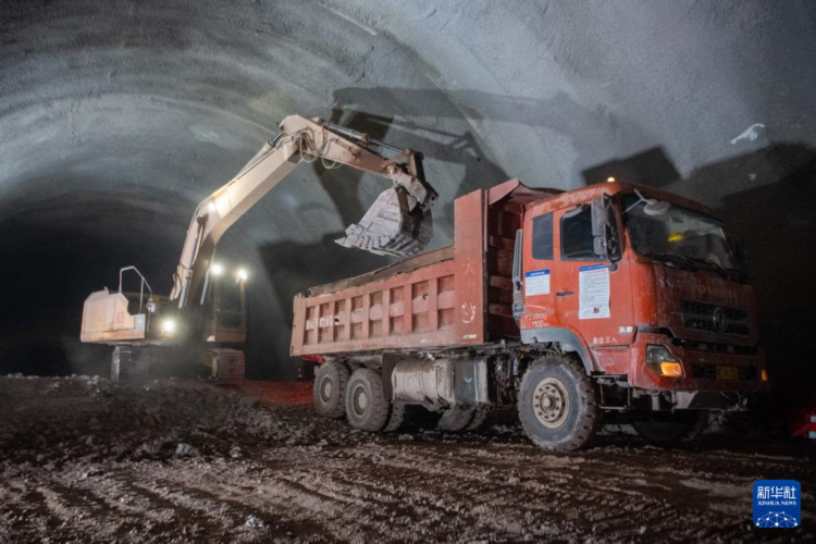 12月12日,大型机械在成达万高铁石坪村隧道建设施工现场作业。