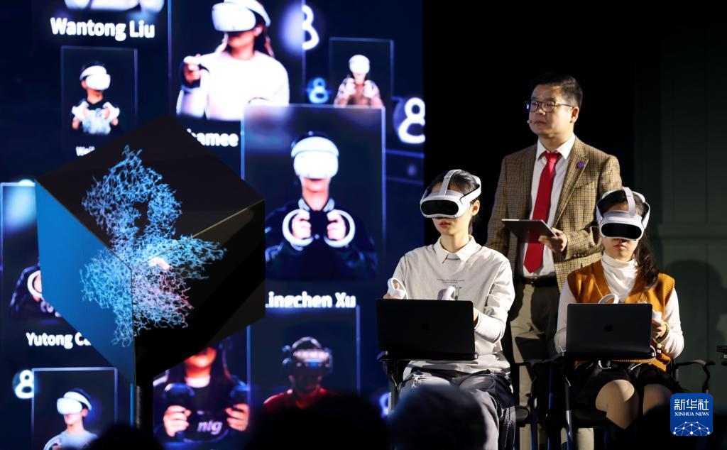 12月12日,在英国伦敦,人们参加智慧教育典型应用场景展示活动。