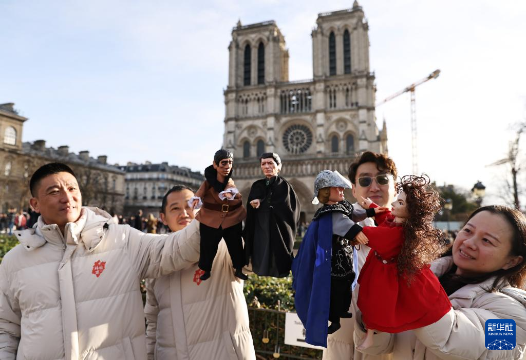 12月15日,在法国巴黎圣母院前,一名游客体验布袋木偶。 中法美丽乡村行活动于17日晚拉开帷幕,由中国歌剧研究会、福建艺术职业学院和法国美丽乡村联盟共同主办,旨在促进文明互鉴和文化交融。活动开幕前夕,中国福建展演团在重新开放的巴黎圣母院前举行快闪活动,在熙攘的游客群中演绎布袋木偶戏《巴黎圣母院》。 新华社记者 高静 摄