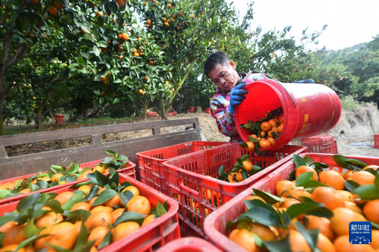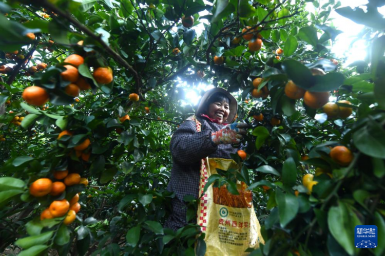 12月18日,在柳州市柳江区土博镇四案村,村民在采收砂糖橘。