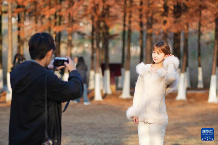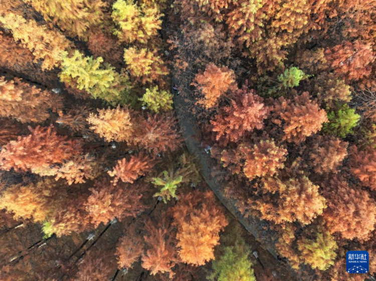 近日,位于湖南省长沙市长沙县的湖南松雅湖国家湿地公园的水杉迎来了最佳观赏期,吸引市民前来游玩打卡。