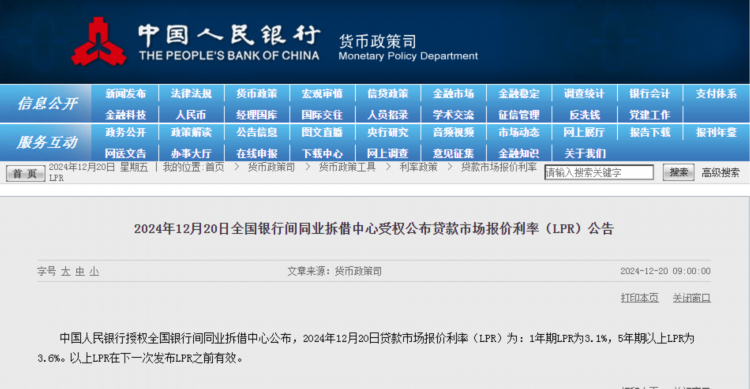 新一期贷款市场报价利率(LPR)12月20日出炉,1年期和5年期以上LPR均未调整。