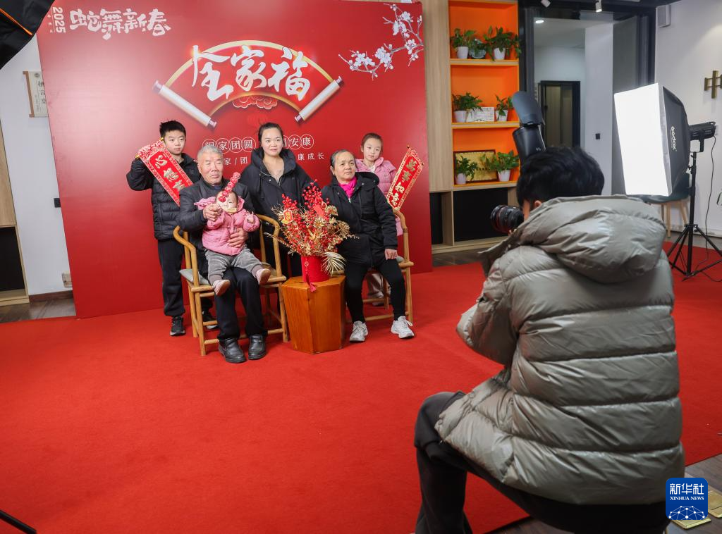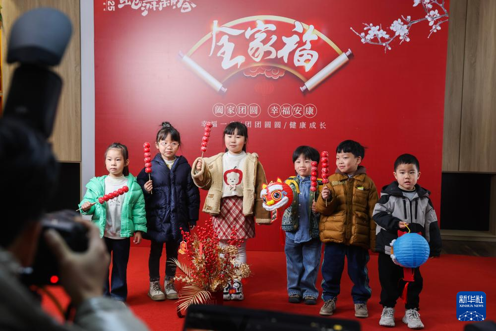 12月21日,在杭州市临平区塘栖镇的共富年货节上,志愿者在亲子活动区免费为当地百姓和游客拍摄照片。