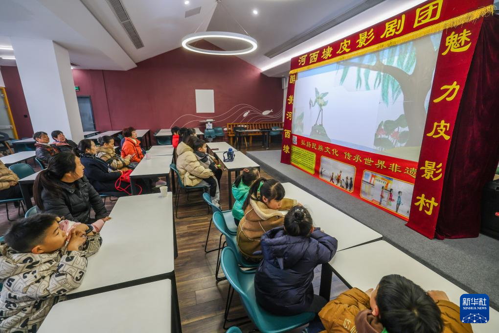 12月21日,在杭州市临平区塘栖镇的共富年货节上,人们在非遗皮影文化体验区观看皮影表演。