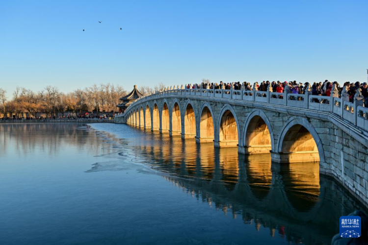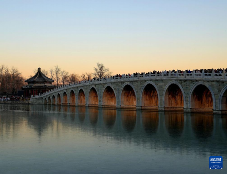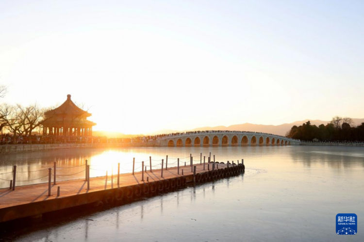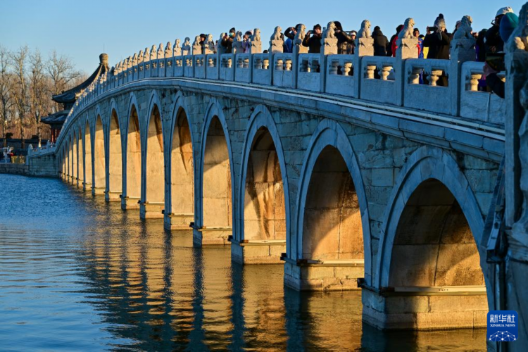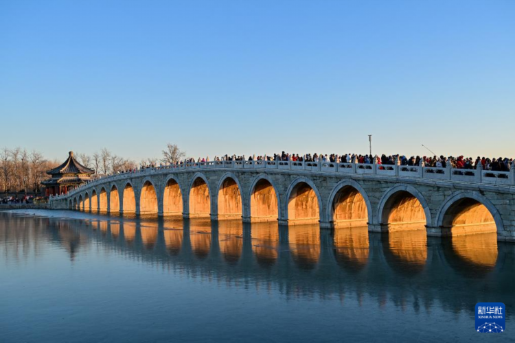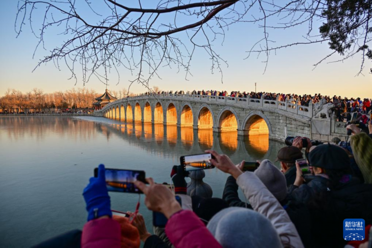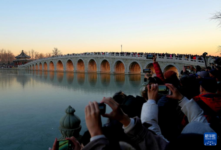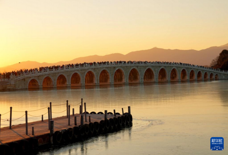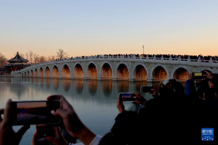 每逢冬至前后,北京颐和园十七孔桥便会上演“金光穿洞”的自然奇观。