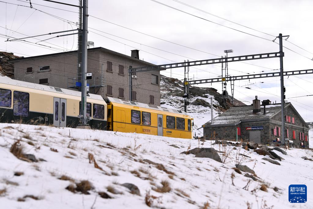 12月2日,行驶在阿尔布拉-贝尔尼纳铁路上的列车驶入瑞士阿尔卑斯山上的奥斯皮齐奥·贝尔尼纳火车站。