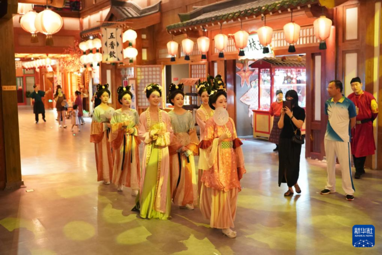 演员在西安长安十二时辰景区表演《霓裳羽衣舞》(5月19日摄)。