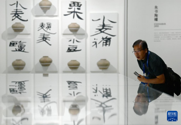 观众在秦始皇帝陵博物院观看“千古一帝的地下王国——秦始皇陵考古发现展”上展出的兵马俑(9月8日摄)。