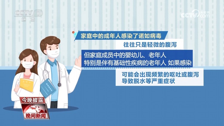 家庭中的成年人感染了诺如病毒,往往只是轻微的腹泻,但家庭成员中的婴幼儿、老年人,特别是伴有基础性疾病的老年人,如果感染,可能会出现频繁的呕吐或腹泻,导致脱水等严重症状。