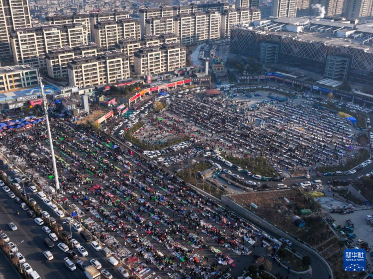 12月24日,市民游客在江苏省连云港市东海县的“水晶大集”上选购(无人机照片)。