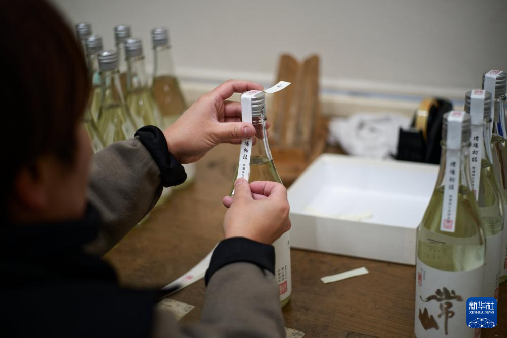 探寻日本传统酿酒工艺 12月17日,在日本福井县常山酒厂,工人为清酒贴上标签封瓶。 联合国教科文组织于2024年12月将日本的“日本使用米麹菌酿酒的传统知识和技能”列入非物质文化遗产名录。这其中包括清酒、烧酒等多种日本传统酒的酿造方法,是当地自然条件与人文创造相结合而生成的硕果。入选非遗名录,为日本酿酒行业带来了新机遇。为此,记者前往福井县,探访当地拥有220年历史的日本常山酒厂。 新华社记者 张笑宇 摄