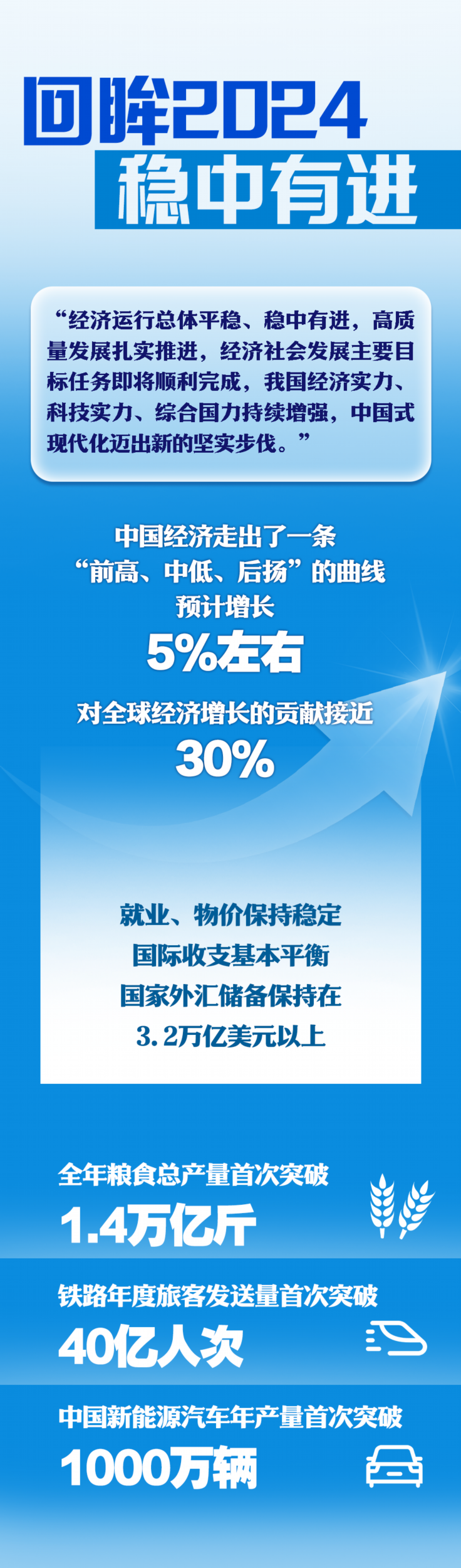 2024年,中国经济虽然有起伏,但迎难而上、稳中求进,实现全年经济增长目标的信心不断增强。