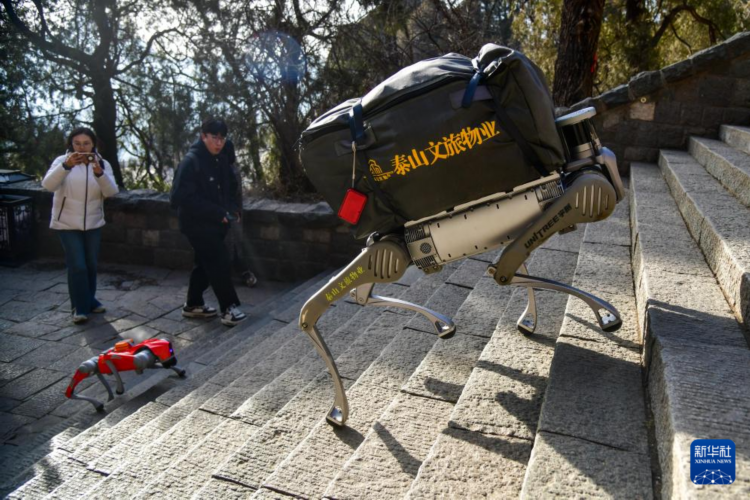 12月30日,在山东省泰安市泰山景区,机器狗进行登山测试。