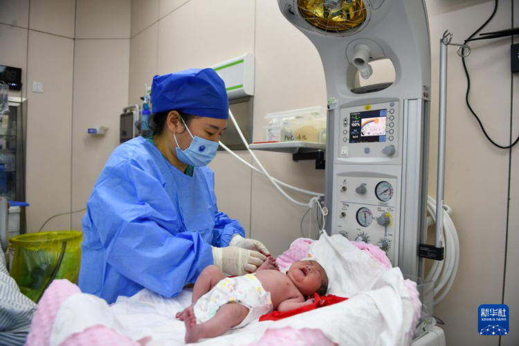 2025年1月1日凌晨,在位于吉林长春的吉林大学白求恩第一医院妇产中心产科,主治医师陈忱将新生儿推出产房。