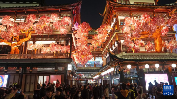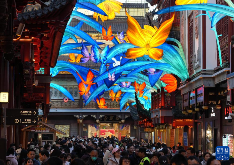 2025年1月1日,人们在豫园商城的凝晖路赏灯。
