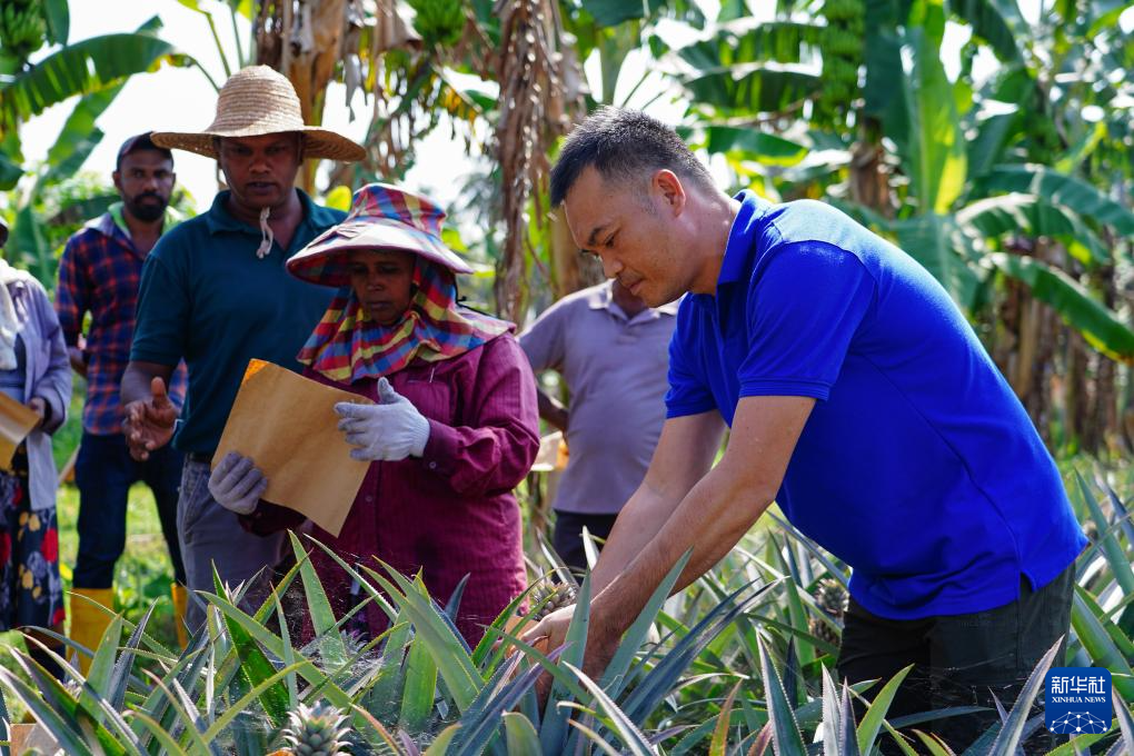 斯里兰卡果园里的新希望 12月23日,中国热带农业科学院专家赵增贤在斯里兰卡马坎杜拉为当地农户做套袋技术示范。 新华社记者 陈冬书 摄 |