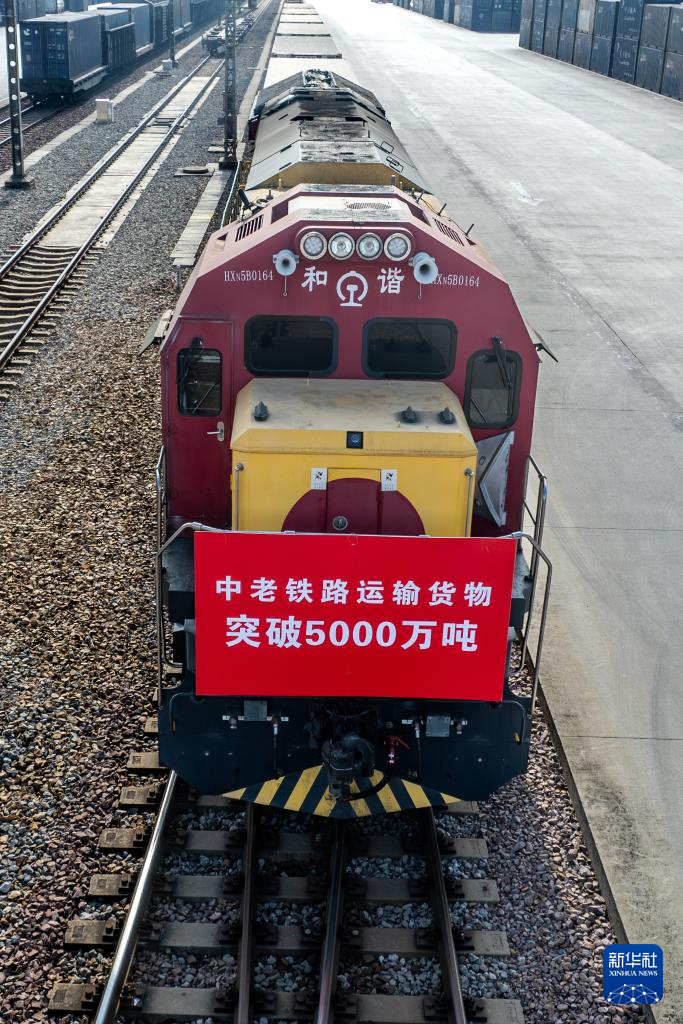 当日,一列满载新鲜果蔬的中老铁路国际货物列车从云南省昆明市王家营西站启程,驶向老挝。这标志着自2021年12月3日全线开通运营以来,中老铁路货物运输总量突破5000万吨大关,其中跨境货物1158万吨。