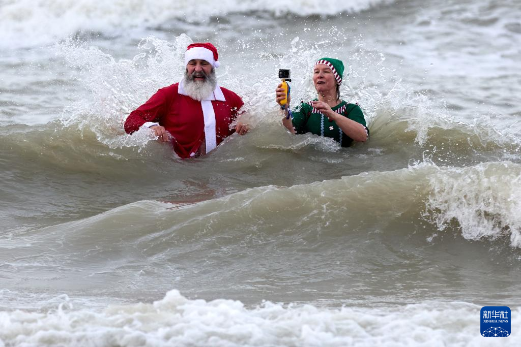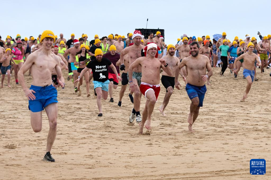 1月4日,人们在比利时奥斯坦德参加“跳海庆新年”活动。 当日,比利时港口城市奥斯坦德举行传统的“跳海庆新年”活动,4000多名民众身着各种服饰跳进北海,庆祝新年的到来。 新华社记者 孟鼎博 摄
