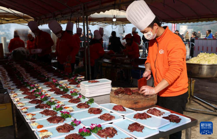 1月5日,在武胜县沿口古镇,厨师在准备庖汤宴。