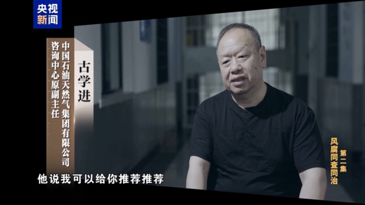 中国石油天然气集团有限公司咨询中心原副主任 古学进:他跟领导在一块吃饭,咱感觉到肯定关系不错,他说我可以给你推荐推荐,给领导推荐谁,肯定也是领导很重视。