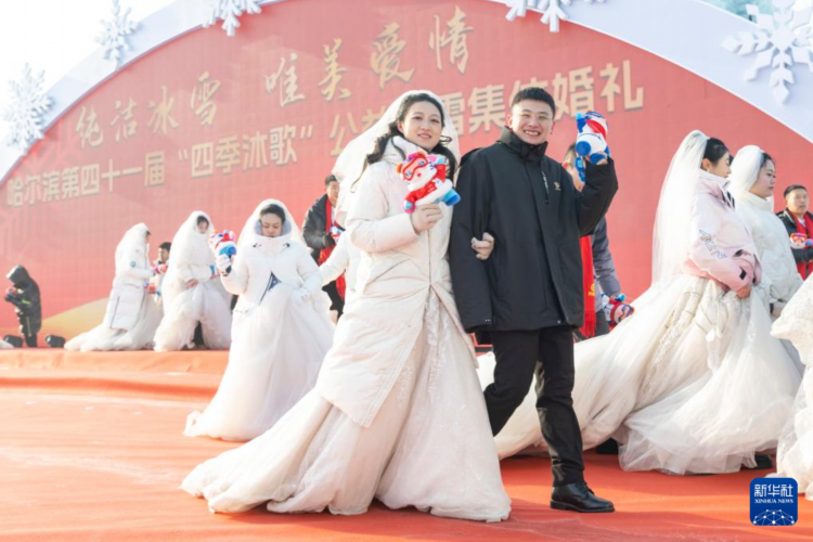 新华全媒+丨冰雪为证 哈尔滨第四十一届公益冰雪集体婚礼举行