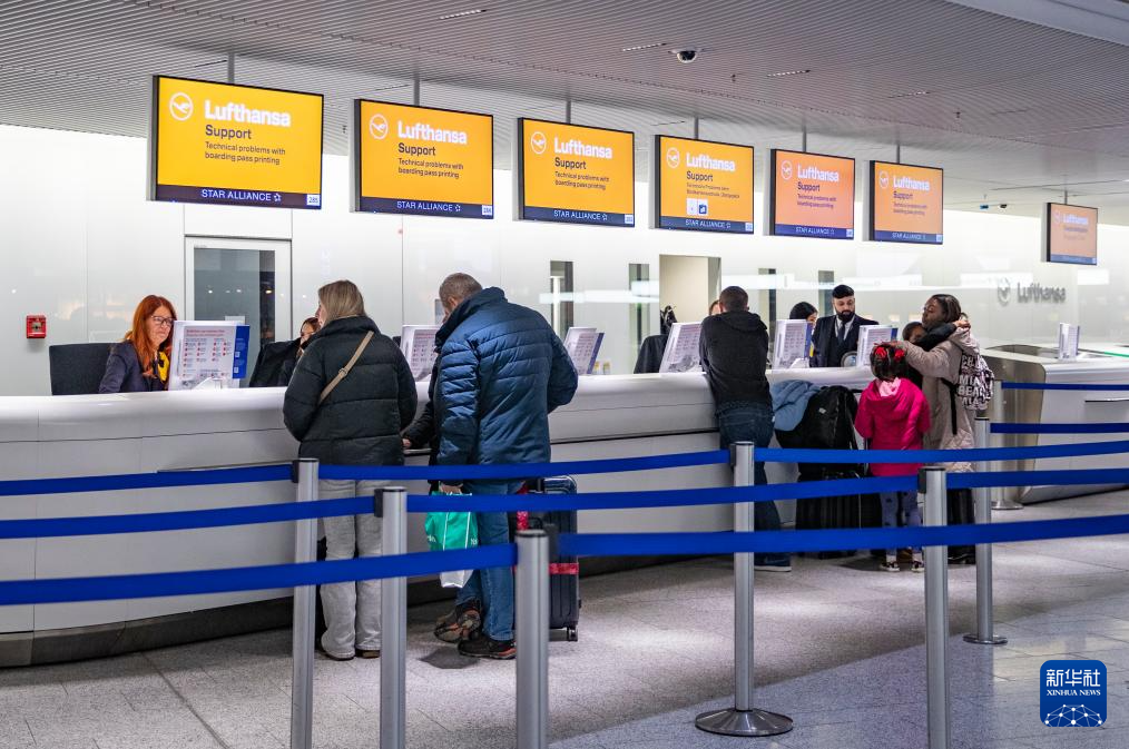 1月3日,人们在德国法兰克福机场的汉莎航空服务柜台前等候。