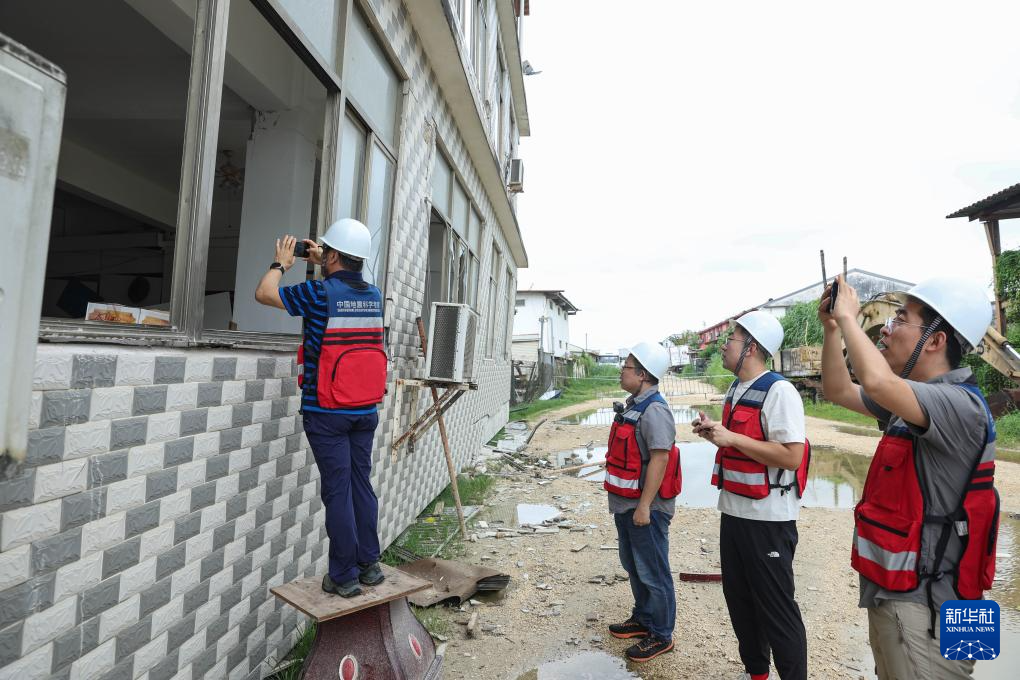 1月1日,在瓦努阿图维拉港,中国地震局专家组成员查看房屋受损情况。