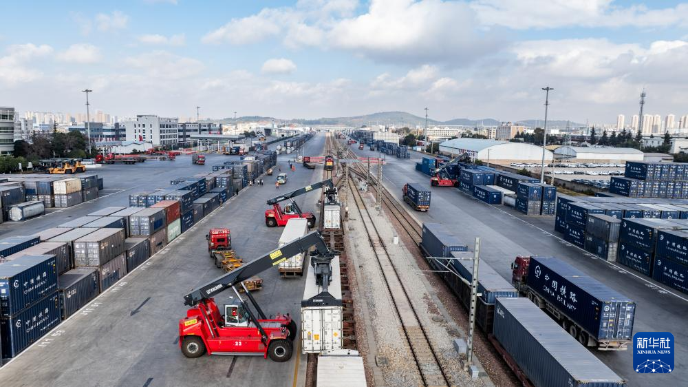 中老铁路货物运输总量突破5000万吨 1月2日,中老铁路国际货物列车在云南省昆明市王家营西站进行装箱作业。 当日,一列满载新鲜果蔬的中老铁路国际货物列车从云南省昆明市王家营西站启程,驶向老挝。这标志着自2021年12月3日全线开通运营以来,中老铁路货物运输总量突破5000万吨大关,其中跨境货物1158万吨。 据介绍,中老铁路开通运营以来,中老两国铁路部门加强货物运输组织,提升运输能力和效率,跨境货物列车每日开行数量由开通初期的2列增加到目前的18列,列车牵引吨数由2000吨增至2500吨。2024年,中老铁路运输货物总量达1960万吨,日均保持在5万吨以上。 新华社记者 胡超 摄 |