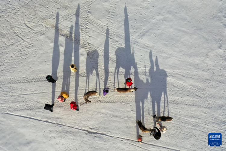1月7日,游客在呼和浩特市大黑河军事文化乐园内的冰雪乐园游玩(无人机照片)。