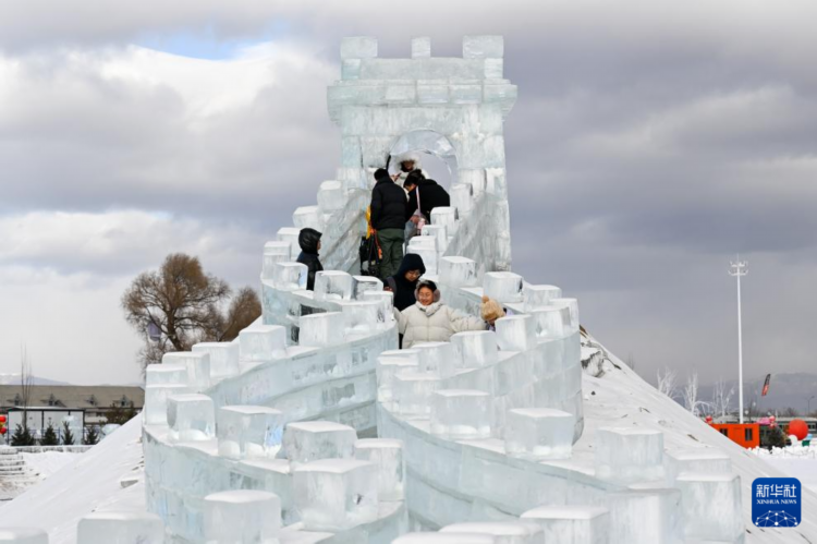 冬日,内蒙古呼和浩特市大黑河军事文化乐园内的冰雪乐园里,冰雕晶莹剔透,冰雪活动丰富多样,吸引游客前来观赏游玩。