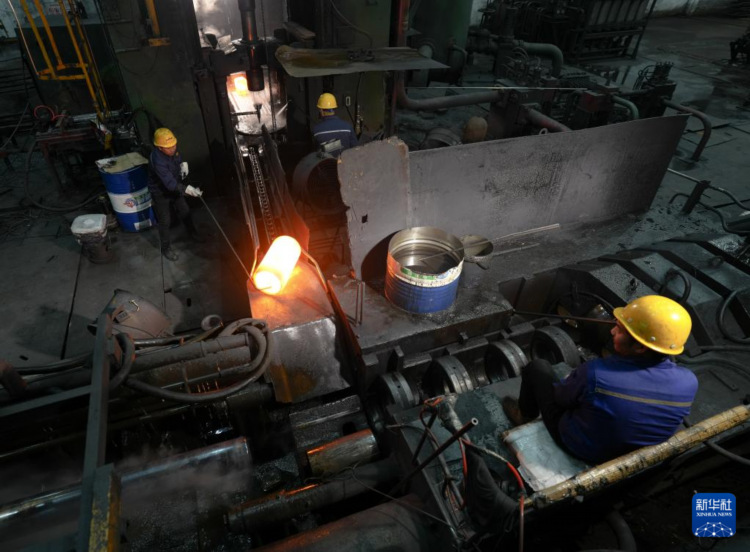 1月7日,在绍兴市上虞区浙江锦敦气体装备智造股份有限公司,工作人员利用该公司自主研发的技术生产钢质无缝气瓶。